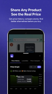 खरीदारी के अनुभव को एक नई दिशा देने के लिए **Buyhatke** आपके साथ है। यह ऐप आपकी पसंदीदा उत्पादों पर पैसे बचाने और समझदारी से खरीदारी करने का सबसे बेहतरीन साथी है। इसकी अनूठी 'मूल्य ग्राफ' सुविधा के साथ, आप किसी भी उत्पाद की कीमतों में उतार-चढ़ाव को समय के साथ देख सकते हैं। यह आपको रुझानों, अधिकतम और न्यूनतम मूल्यों को समझने में मदद करता है, ताकि आप उस सुनहरे पल की पहचान कर सकें जब कीमत सबसे कम हो। इसके अलावा, 'मूल्य गिरावट अलर्ट' आपको अपनी निर्धारित कीमत पर उत्पाद उपलब्ध होने पर तुरंत सूचित करता है, चाहे वह Amazon हो या Flipkart, जिससे आप कभी भी सबसे अच्छे सौदे से वंचित न रहें।