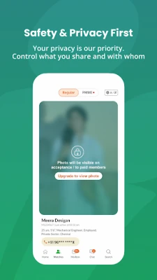 प्रीमियम सदस्यता के साथ, आप अपनी यात्रा को और भी विशेष बना सकते हैं। हमारी सुरक्षित इंस्टेंट चैट और वॉइस कॉलिंग सुविधाओं के ज़रिए आप अपने संभावित जीवनसाथी से कभी भी, कहीं भी जुड़ सकते हैं। "केरल माट्रीमनी प्राइम" के माध्यम से, आप सत्यापित और प्रामाणिक प्रोफ़ाइलों तक पहुँच प्राप्त करते हैं, जबकि 'फ़ीचर्ड लिस्टिंग' आपको प्रीमियम सदस्यों के अनुभाग में प्रदर्शित करके बेहतर प्रतिक्रिया सुनिश्चित करती है। आपकी सुरक्षा और गोपनीयता हमारी सर्वोच्च प्राथमिकता है। SecureConnect® जैसी सुविधाएँ यह सुनिश्चित करती हैं कि आप अपना मोबाइल नंबर साझा किए बिना भी बातचीत कर सकें, और आप अपनी तस्वीरों और संपर्क विवरणों की दृश्यता पर पूर्ण नियंत्रण रखते हैं। चाहे आप किसी विशिष्ट समुदाय, धर्म या भौगोलिक क्षेत्र से हों, केरल माट्रीमनी आपको पूरे विश्वास के साथ अपना जीवनसाथी खोजने में मदद करता है।