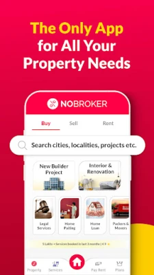 NoBroker App - प्रॉपर्टी किराए पर लेने, खरीदने या बेचने और घर से जुड़ी सेवाओं के लिए आपका बेहतरीन साथी। किराए के लिए घर, अपार्टमेंट, फ्लैट या कमरा ढूंढें, या अपनी प्रॉपर्टी खरीदें/बेचें। घर की सभी ज़रूरतों के लिए एक ही जगह।